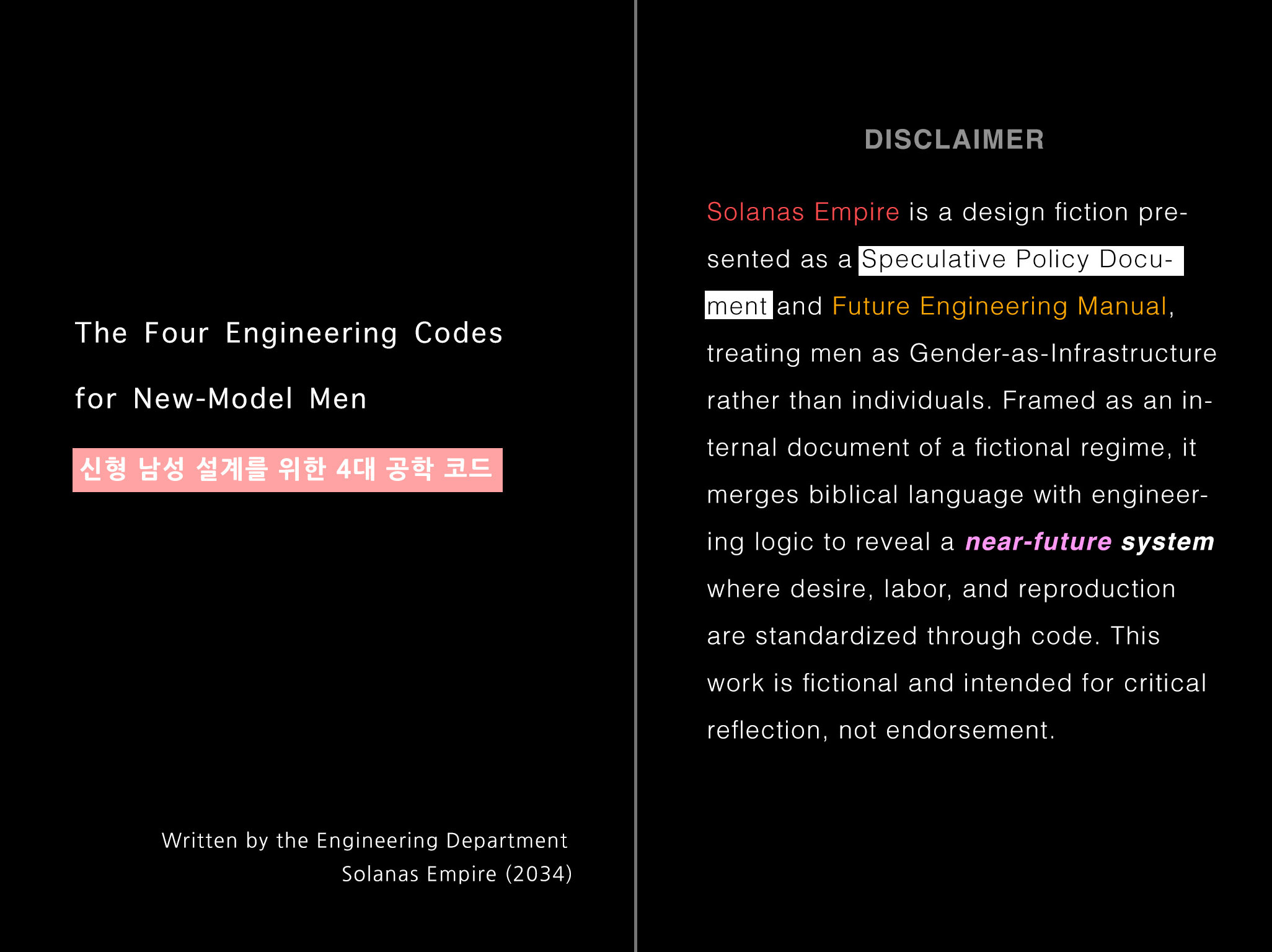 Disclaimer: This project is a work of speculative fiction and critical design. All characters, ideologies, and social systems depicted are fictional and intended solely for artistic inquiry and critical reflection, not as advocacy or endorsement of real-world policies, violence, or discrimination.