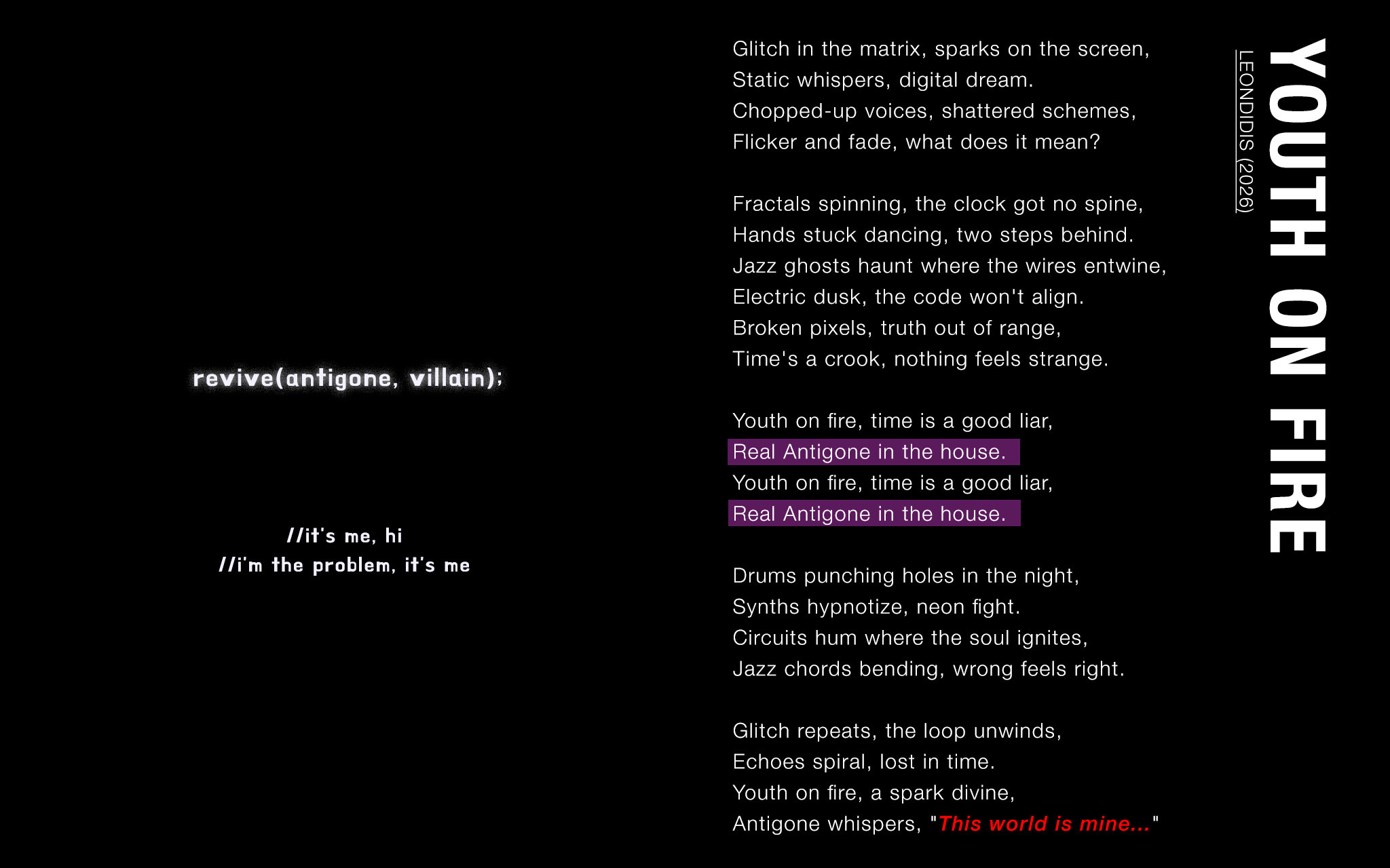 Antigone whispers, "This world is mine"